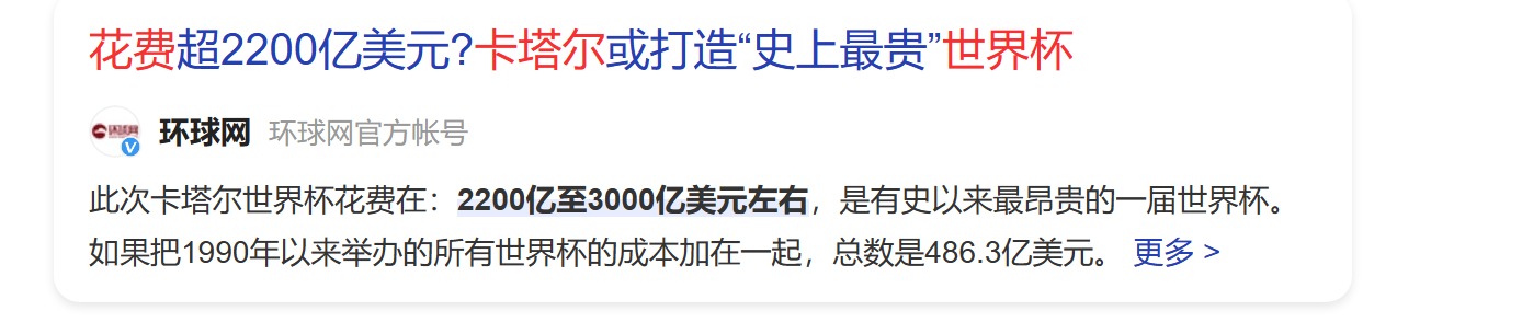 你去搜一下嘛,卡塔尔球场建设费用3.6亿美金