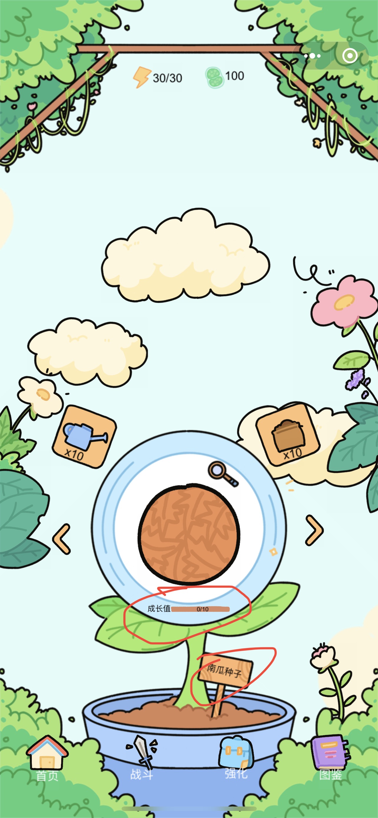 如果把养成的植物换成闯关的角色一眼就知道是培养角色,角色也可以从种子慢慢成长为植物