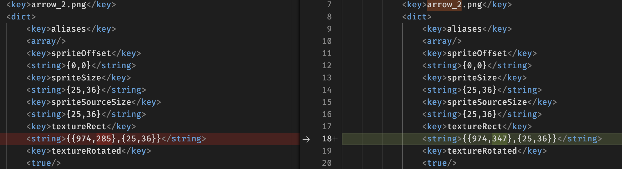 截图中可以看到,同一个切图在plist文件中的位置信息更新了,但plist.meta中的信息没有更新