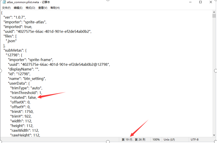 思路就是替换行,plist文件的meta文件里之前存在的图片的宽高旋转这些信息不会更新。