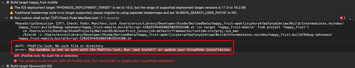 使用 Cocos Creator 生成iOS工程,集成 CocoPods 第三方库编译失败,报错如图,怎么更新 Cocopods 都没用呀,跪求大佬们解答