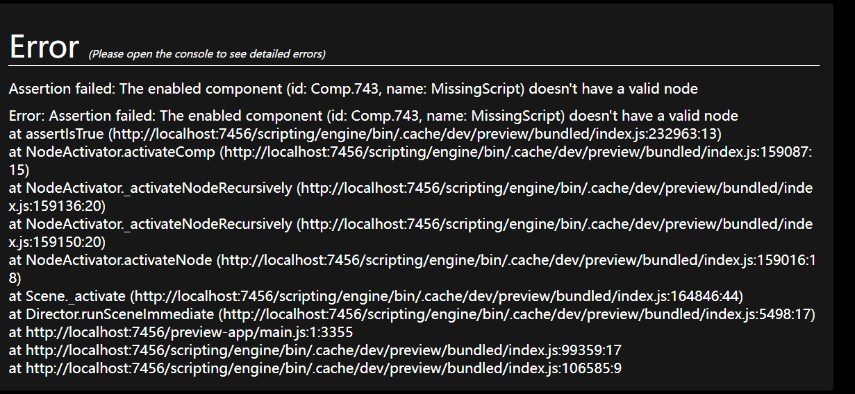 编辑器3.6.2,拖动了某个节点到另一个节点下,然后出现脚本异常,后面恢复则打不开该场景,后面删除了scene/cache 则可以打开,然后现在就是报该错误