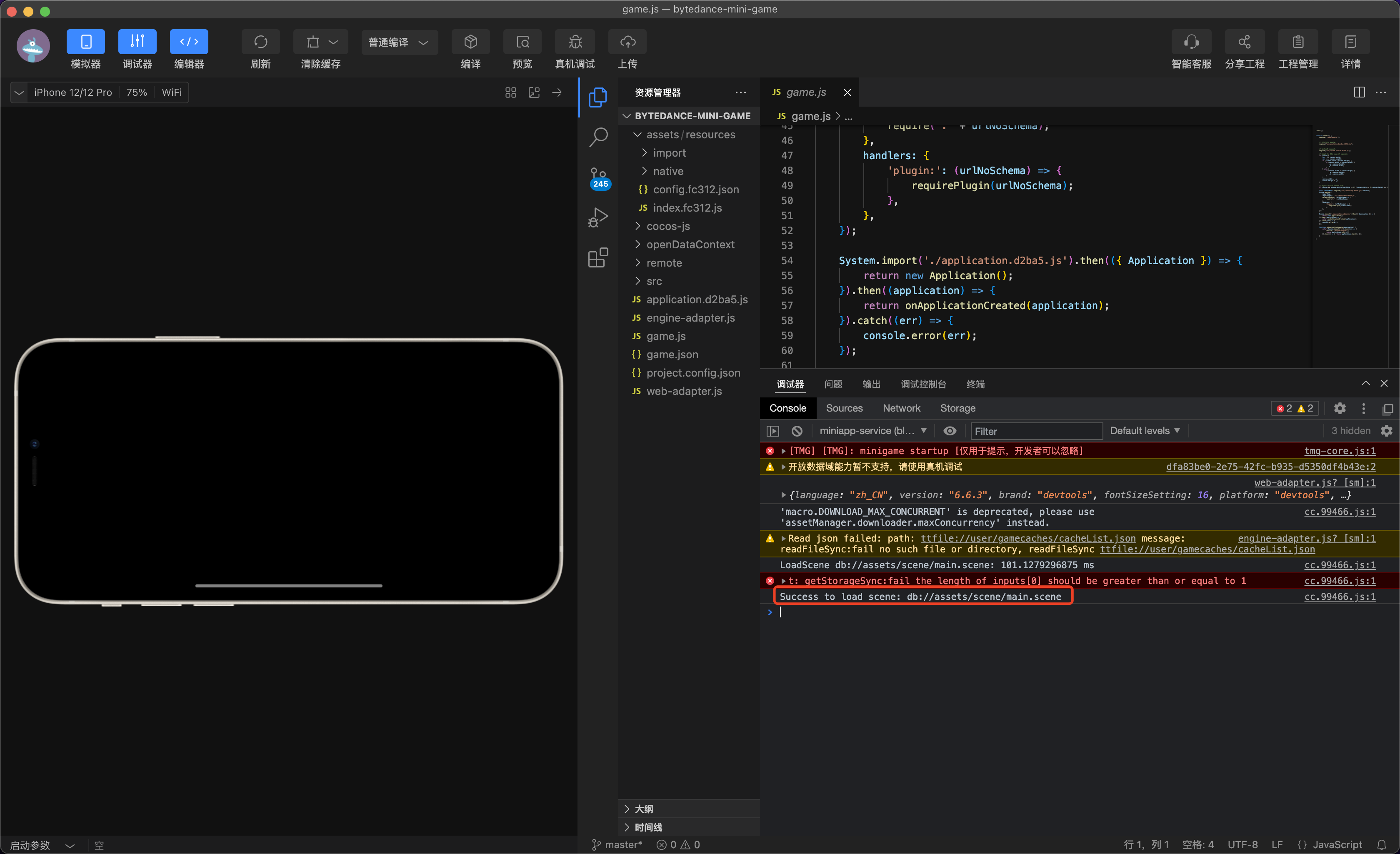 抖音小游戏 日志显示加载场景加载成功了 但是挂载的脚本却没有执行 无法进行下一步