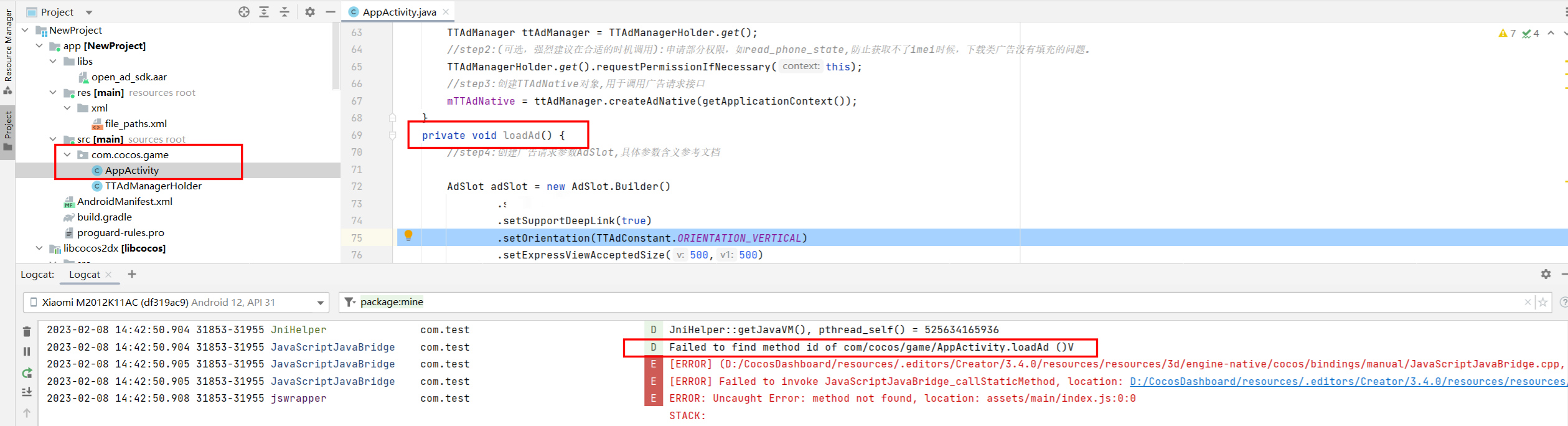 为什么我这里调用java会报错呢,Failed to find method id,有大佬能帮忙看看是什么问题吗?