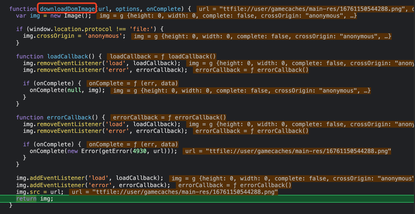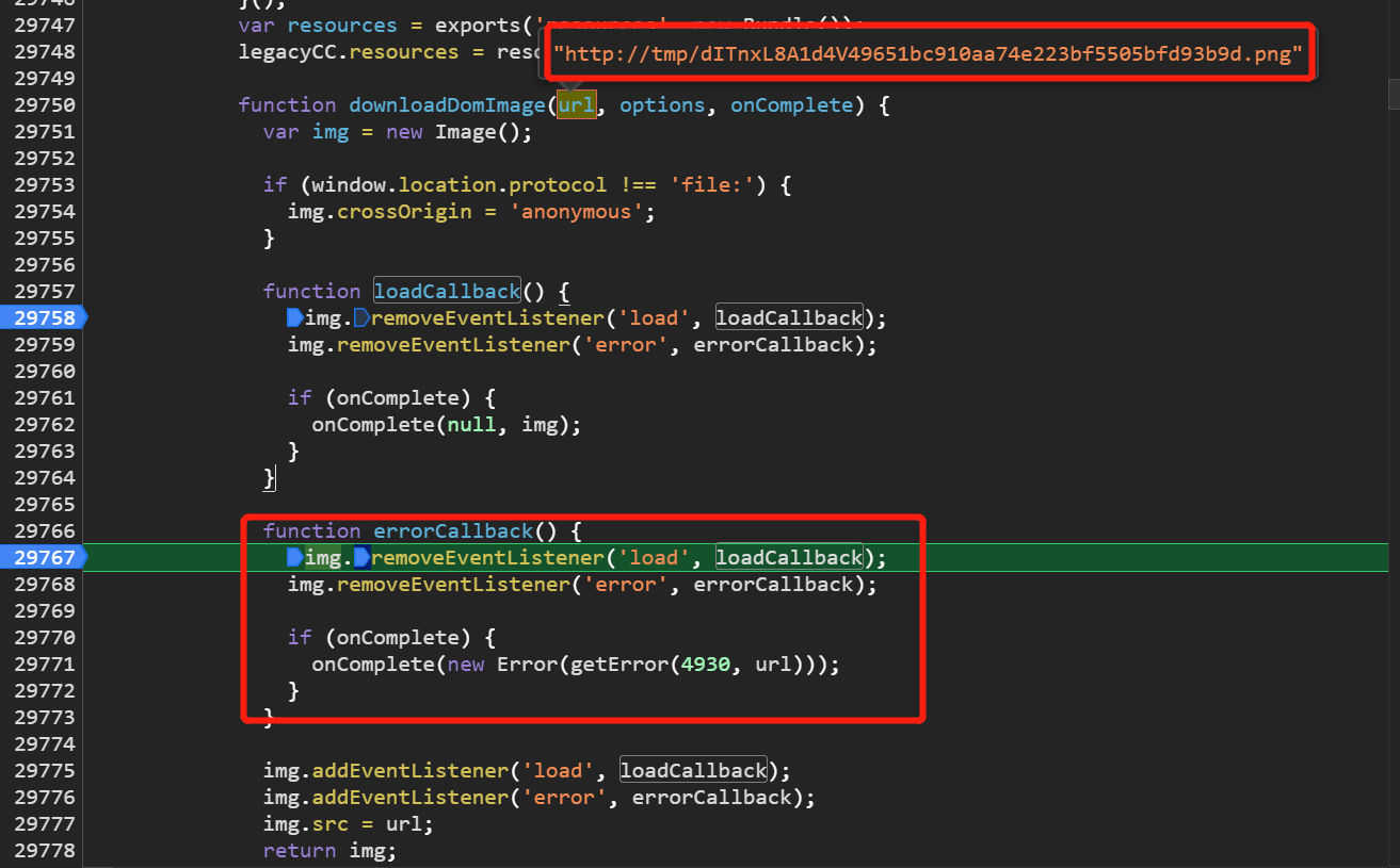 3.经过一系列的文件解析后最终跑到了downloadDomImage函数
