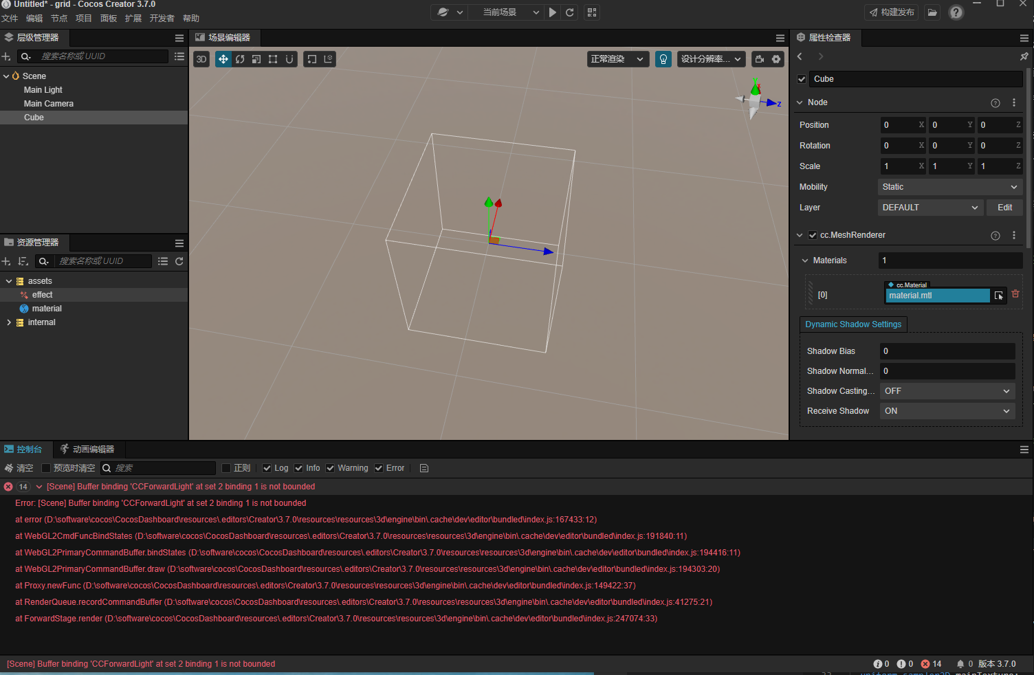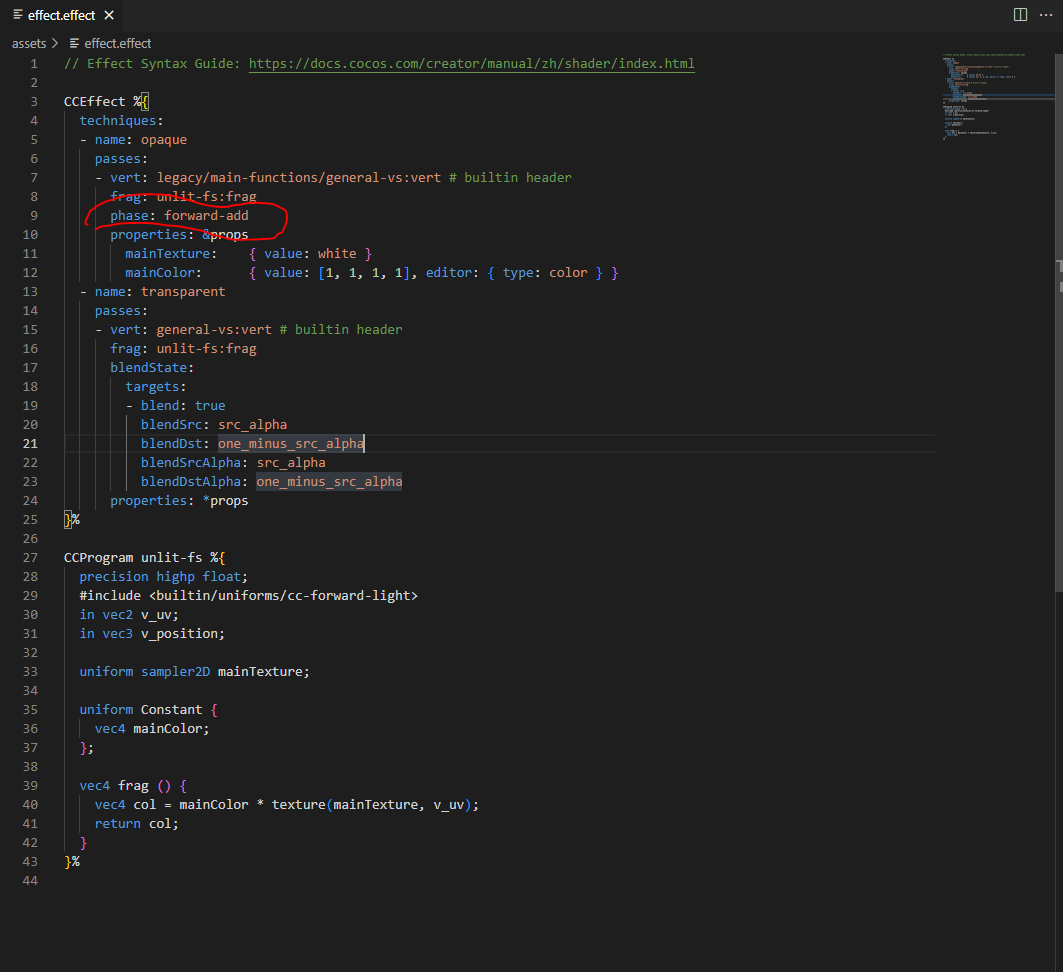 创建一个effect,引入 #include <builtin/uniforms/cc-forward-light>,就会报错,如图1,查论坛看到说加phase: forward-add就可以,但是加入后模型还是不显示,如图2。