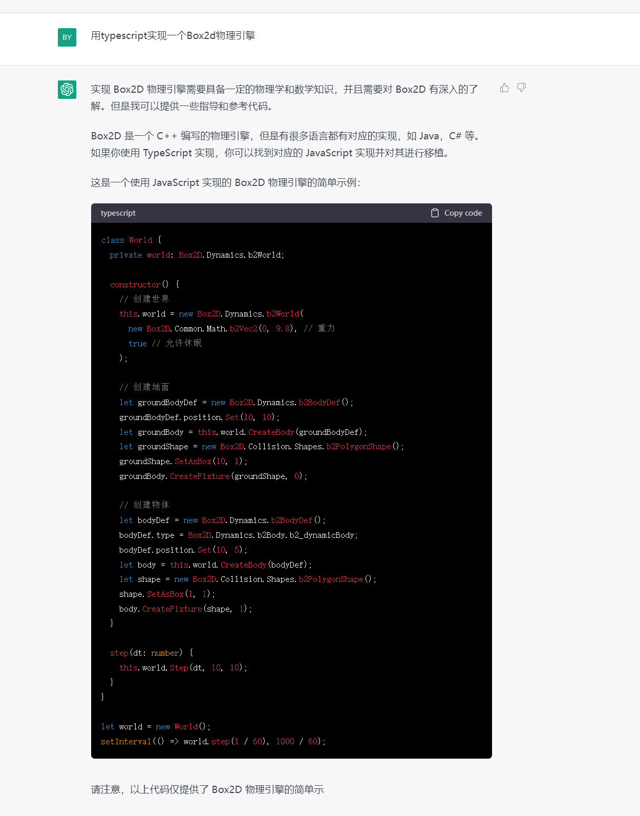 它给我一个牛头不对马嘴的答案。不是实现这个功能,而是教你怎么用这个物理引擎