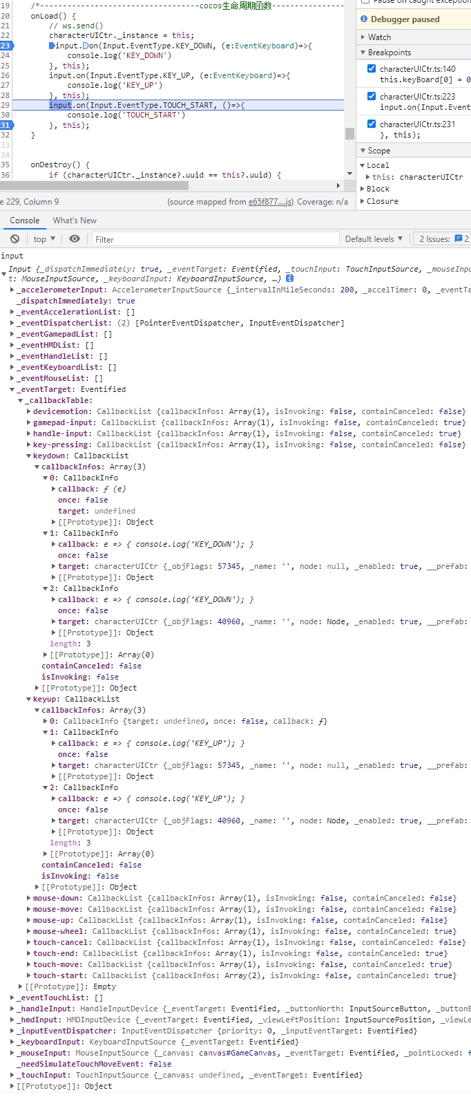 creator3.6.3 输入事件系统中 键盘监听注册成功且未off,但是测试却失效,其效果如图 鼠标事件是OK的