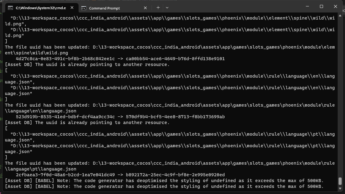 打开编辑器的情况执行命令,会偶现下图问题。查了一下,并没有冲突的uuid,meta文件也是有版本管理的。