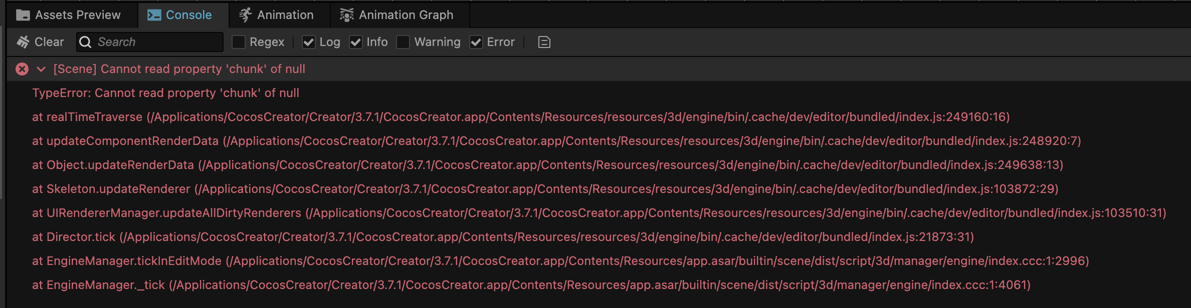 以上操作后,会出现报错,并且场景无法再正常渲染,需要重启编辑器