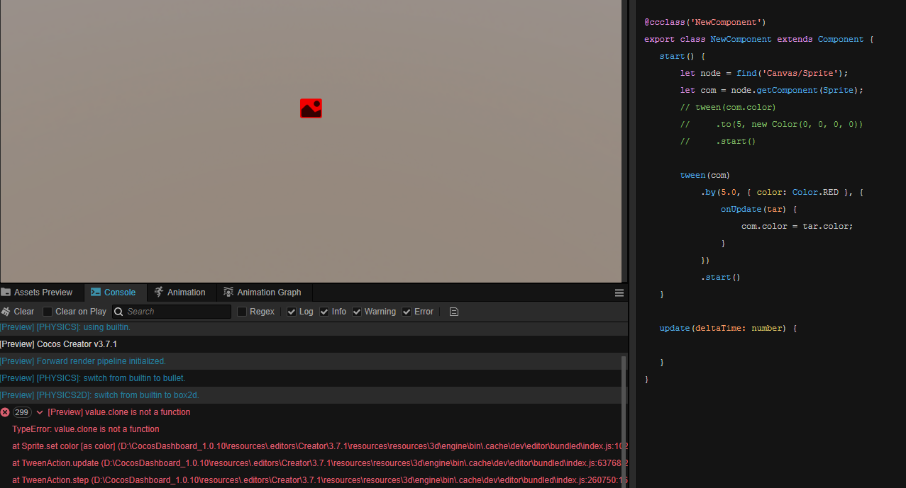 tween update 时 current 的类型与value的类型不一致,设置render的color属性在编辑器环境下会clone color并广播COLOR_CHANGED。
