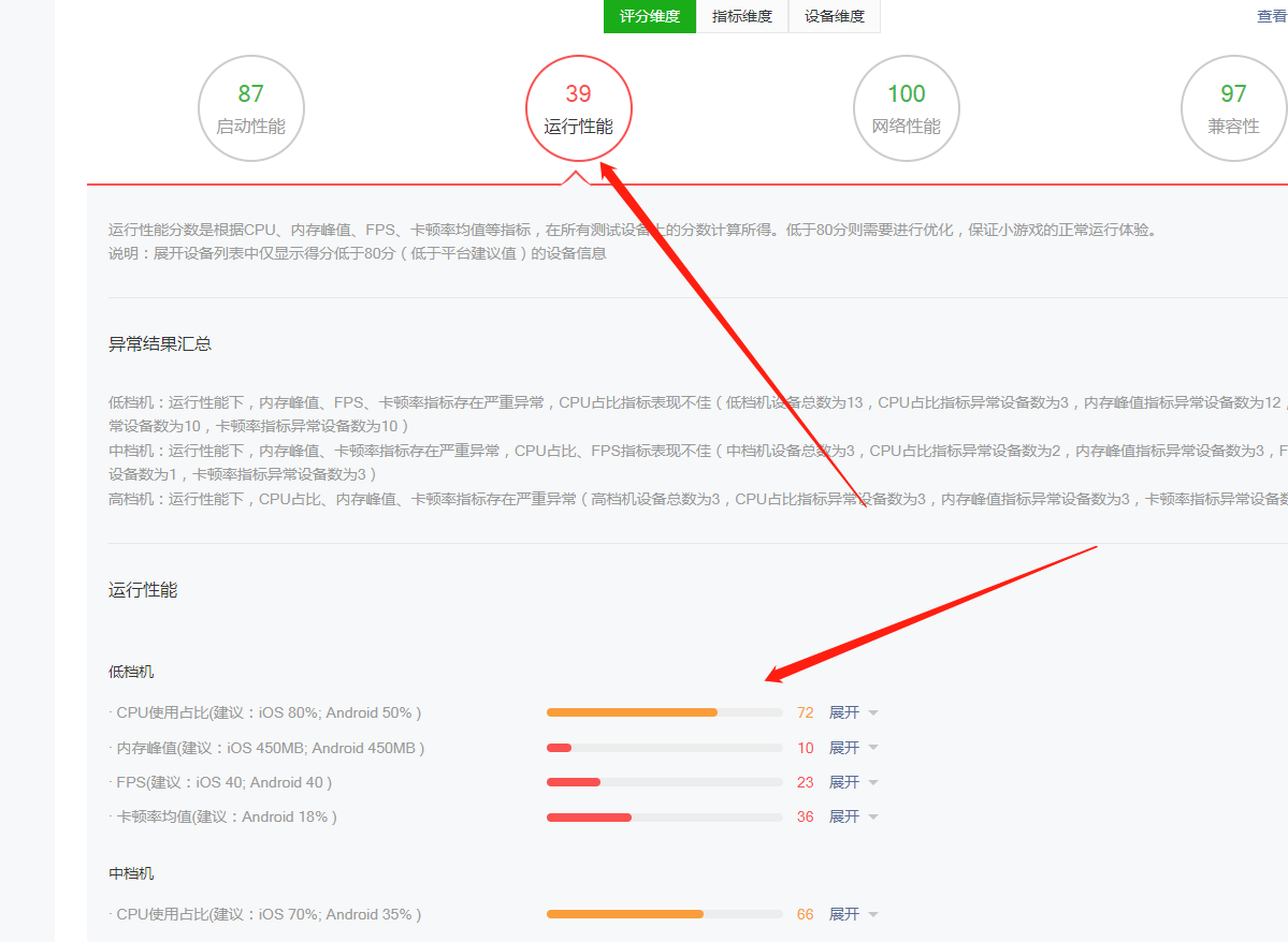 开启了物理引擎,微信的云测试运行性能低的惨不忍睹,截屏如下,想问下大家,你们的测试结果怎么样?