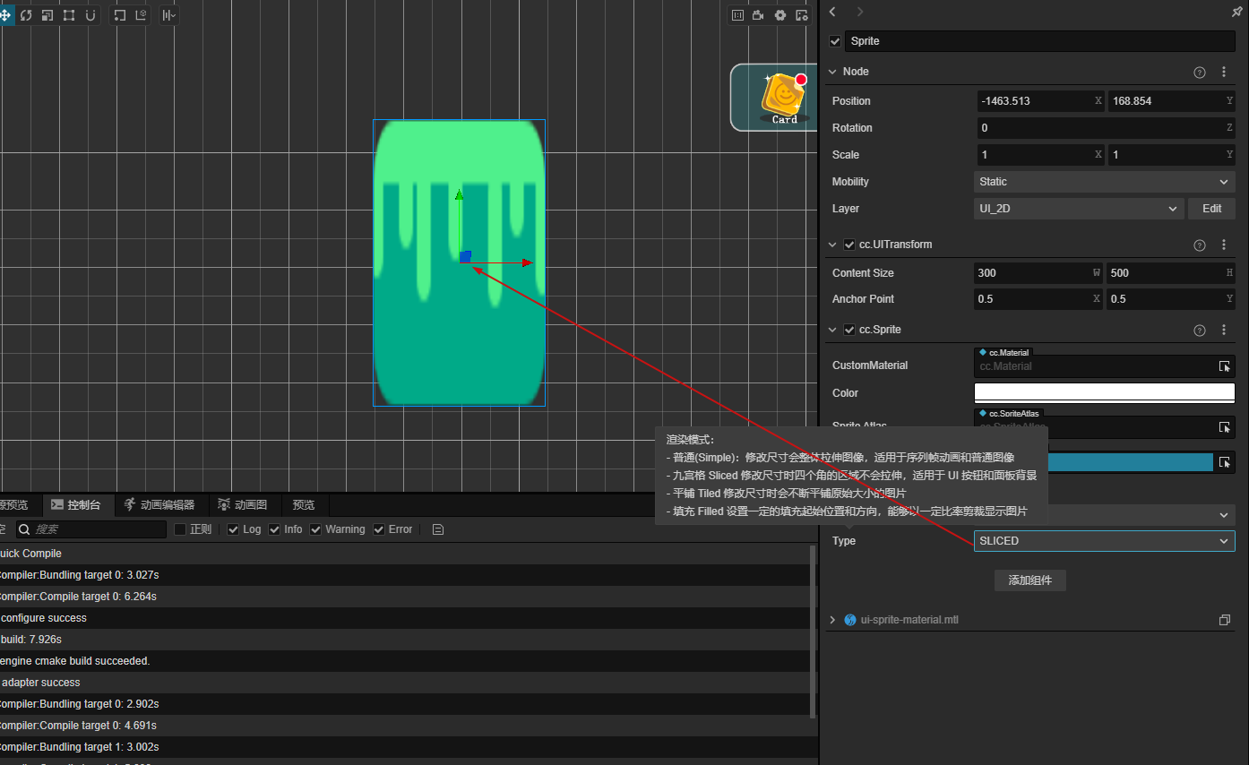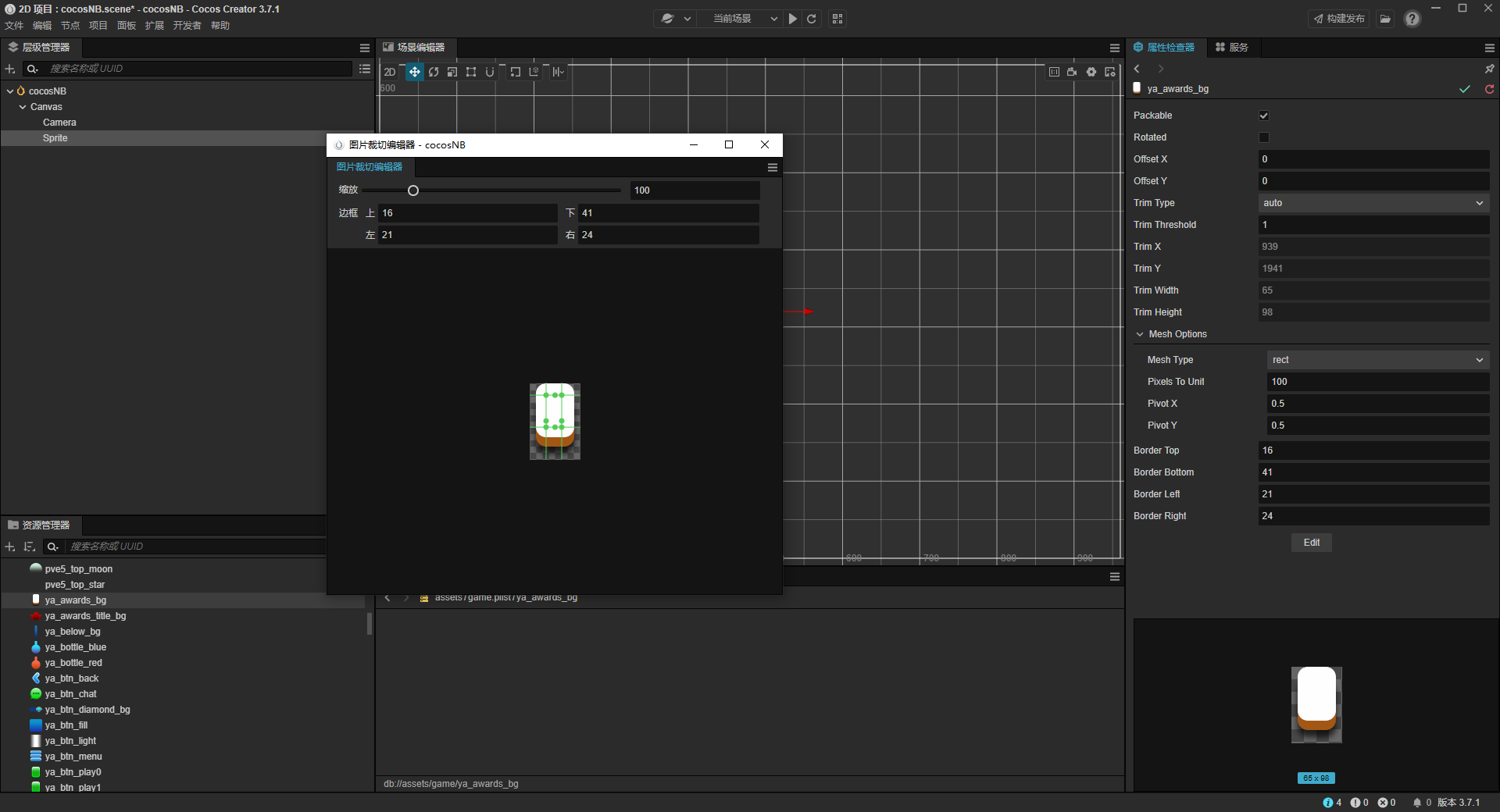 3 把编辑好的图片放到第一步的 sprite 上并调整为 sliced 模式