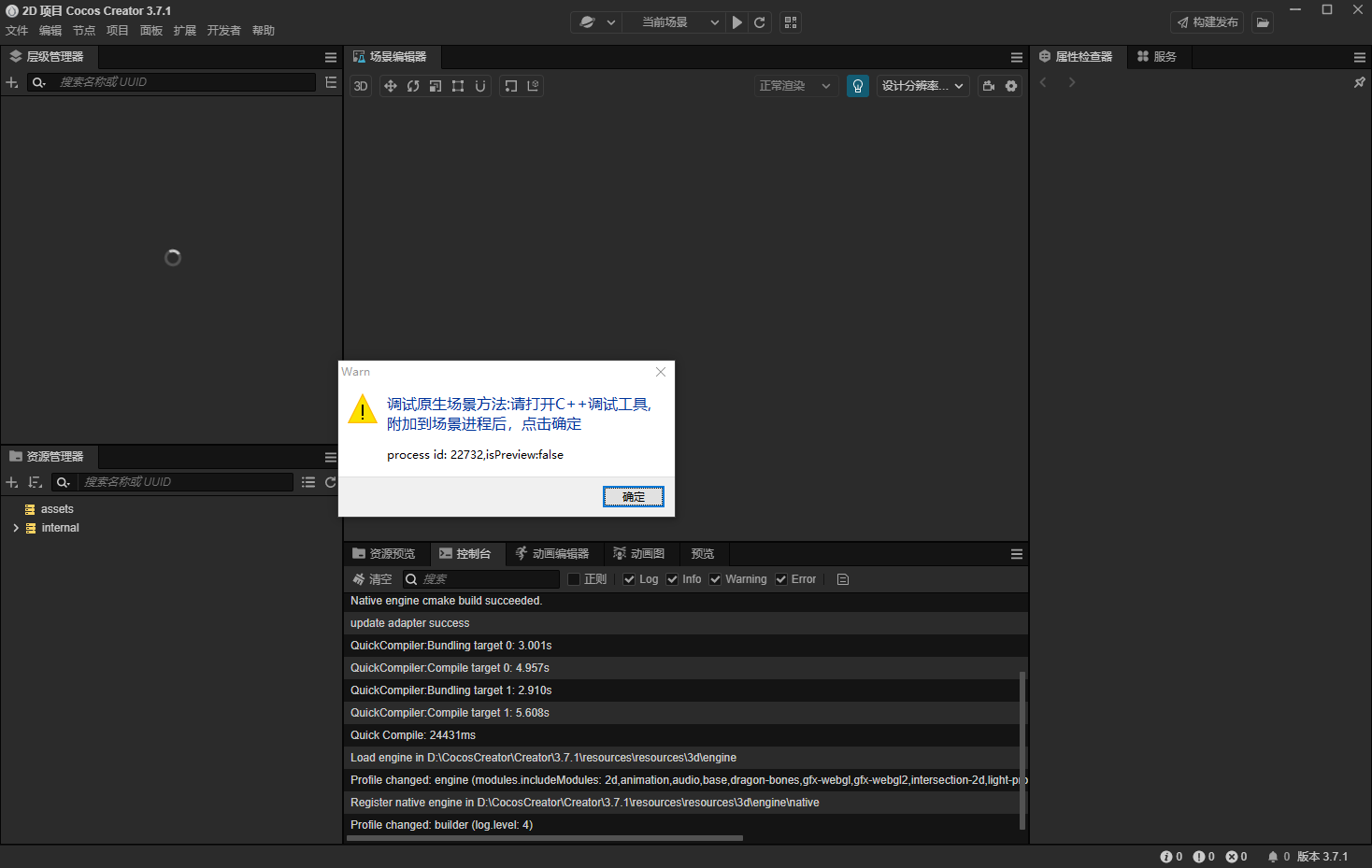 at importNativeEngine (D:\CocosCreator\Creator\3.7.1\resources\app.asar\builtin\scene\dist\script\3d\manager\startup\engine\adapter-util.ccc:1:113)