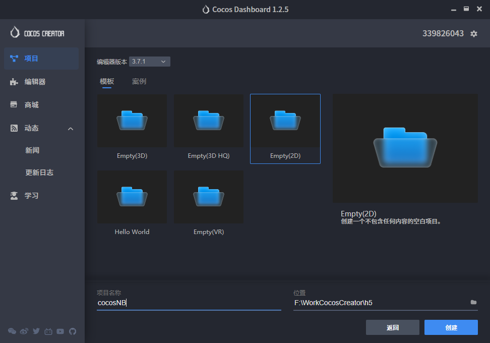 这是最新下载安装的CocosDashboard.exe,创建好后提示: