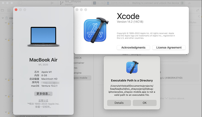 /Users/whiteleaf/Documents/projects/Sea/Sea/build/ios_ohayoo/proj/Debug-iphoneos/ios_ohayoo-mobile.app is not a valid path to an executable file.