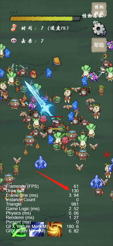 应该不是这个原因。我试了,我一直创建,但只用一个怪物的动画就不会出现dc上升的情况。直到第二种怪物出现。