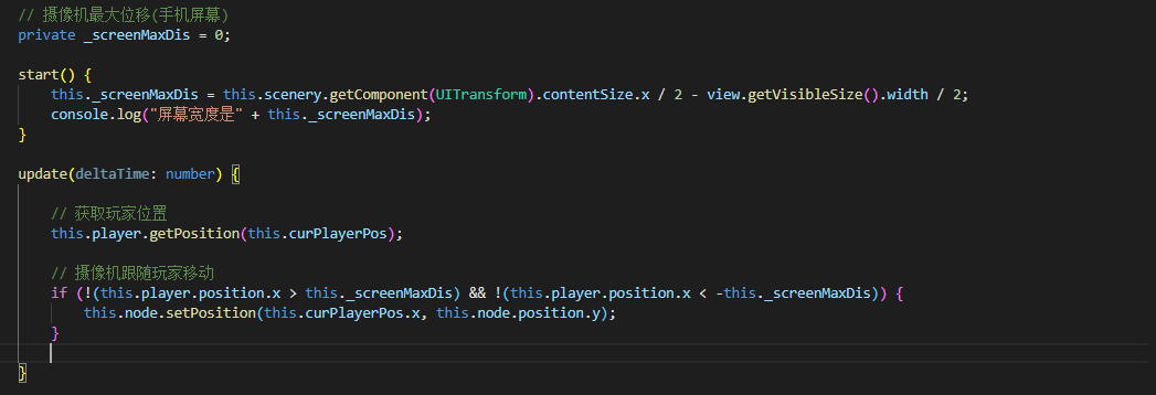 上面这串逻辑是当玩家超出“快”屏幕外时Camera停止跟随,但当我按jump按钮和左边按钮时,玩家老是向右边移动,当玩家超过右边this._screenMaxDis这个数值时,Camera正常运行。但是左边老是按着按着向右边移动。