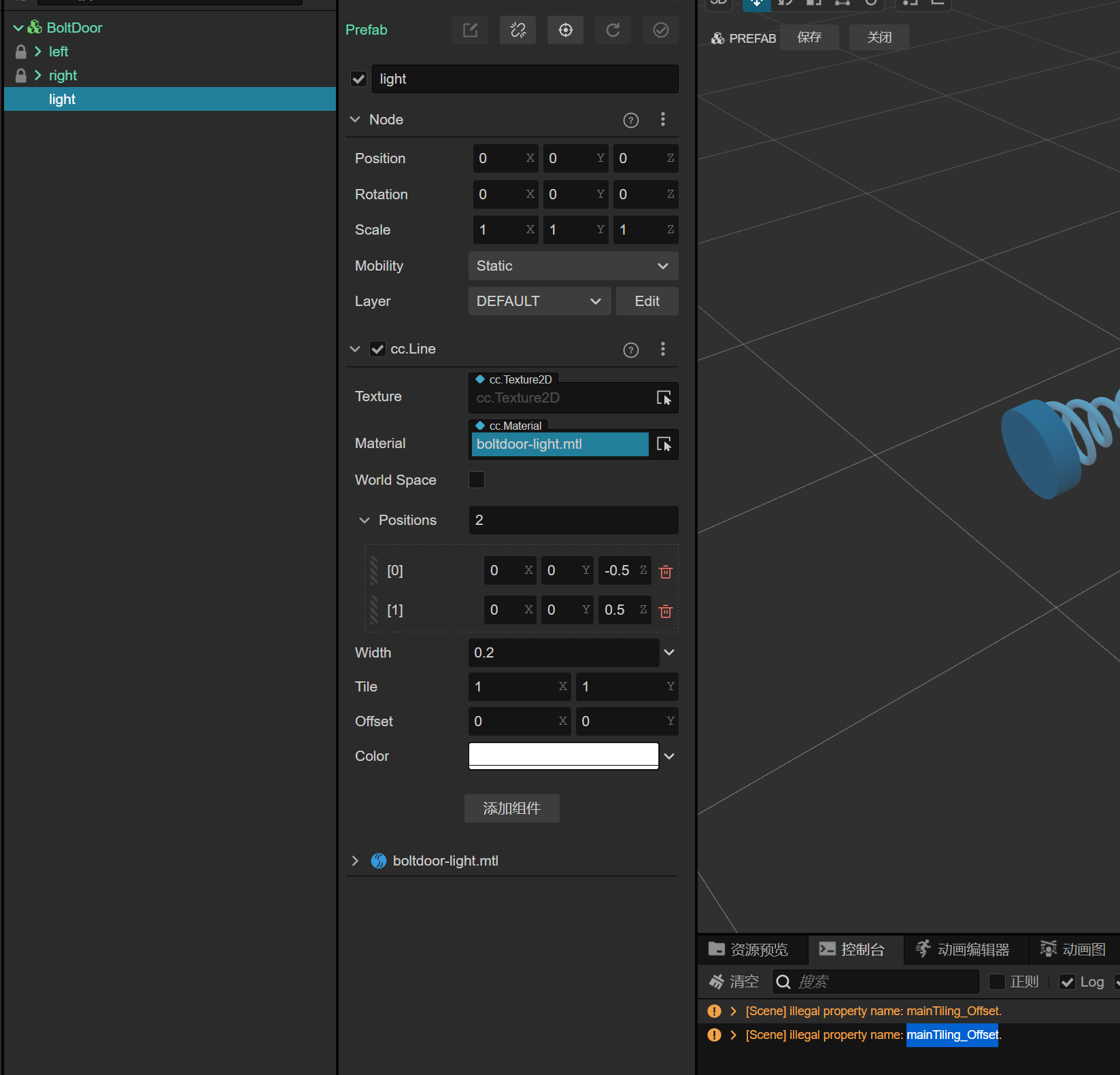 引擎3.7.1,之前版本没有测试。 首次设置cc.Line完全没有问题,显示也正常,但是保存在prefab之后,二次打开,就不显示,还有警告爆出。