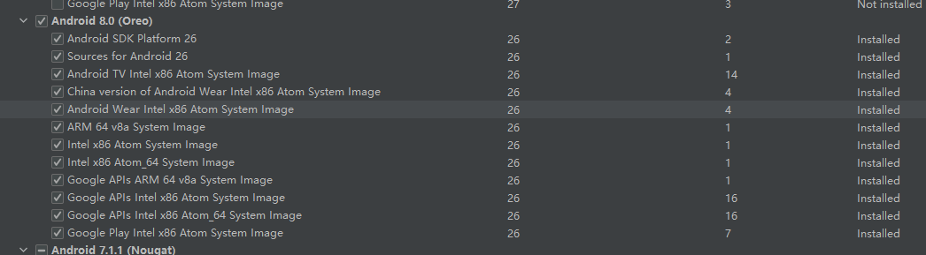 打包时选择安卓26,8.0的,能安装的都安装了,还缺了什么吗?
