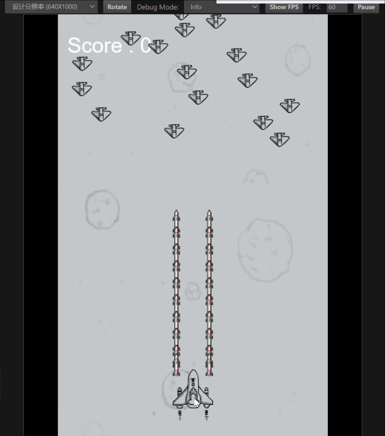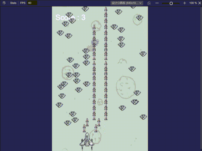 这个是我使用CocosCreator3.7.1版本的编辑器运行的游戏情况,这个是正常的。(视频转gif出问题了,呜呜呜呜呜呜呜)这种情况下鼠标和飞机是正常的。