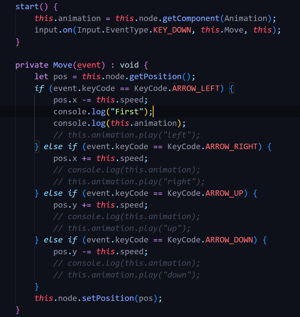 家人们,我这里就是给一个人物节点添加了键盘控制的事件监听,而且这也添加了四种动画。
