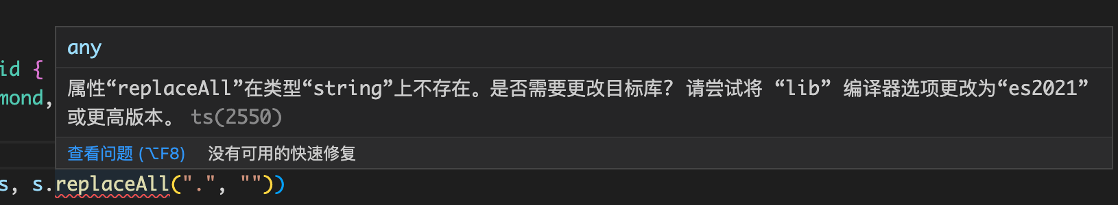 不过在不熟悉TS配置下或者考虑运行环境兼容性的话,建议替换成正则——s.replace(/./g, ‘’)