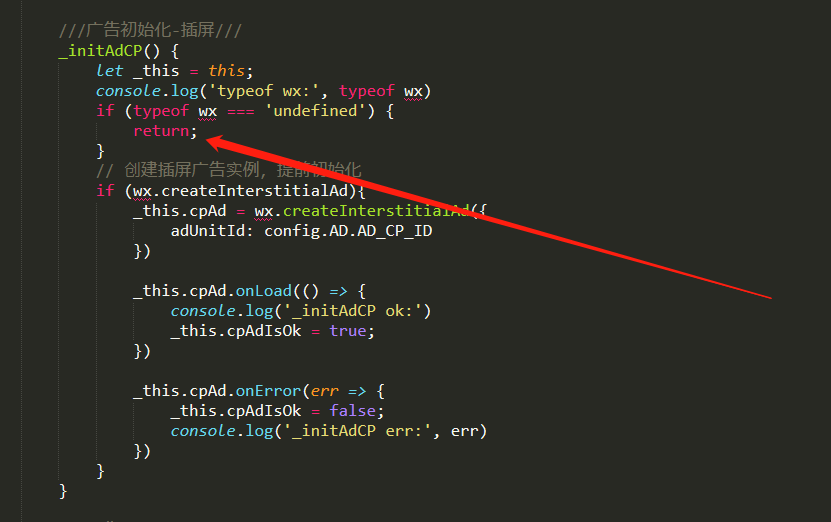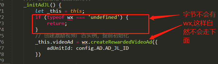 不打印typeof wx:就罢了,而且程序还走到了if (wx.createInterstitialAd){这里,难道字节的程序是乱跑的吗?