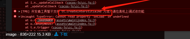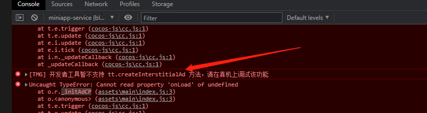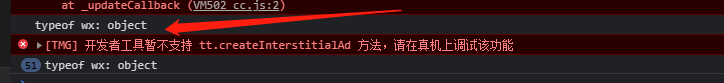 而且还报,“[TMG] 开发者工具暂不支持 tt.createInterstitialAd 方法,请在真机上调试该功能”,这个错误
