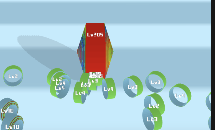 红色的吃到一定等级 scale足够大后 (mesh/box/sphere都试过)