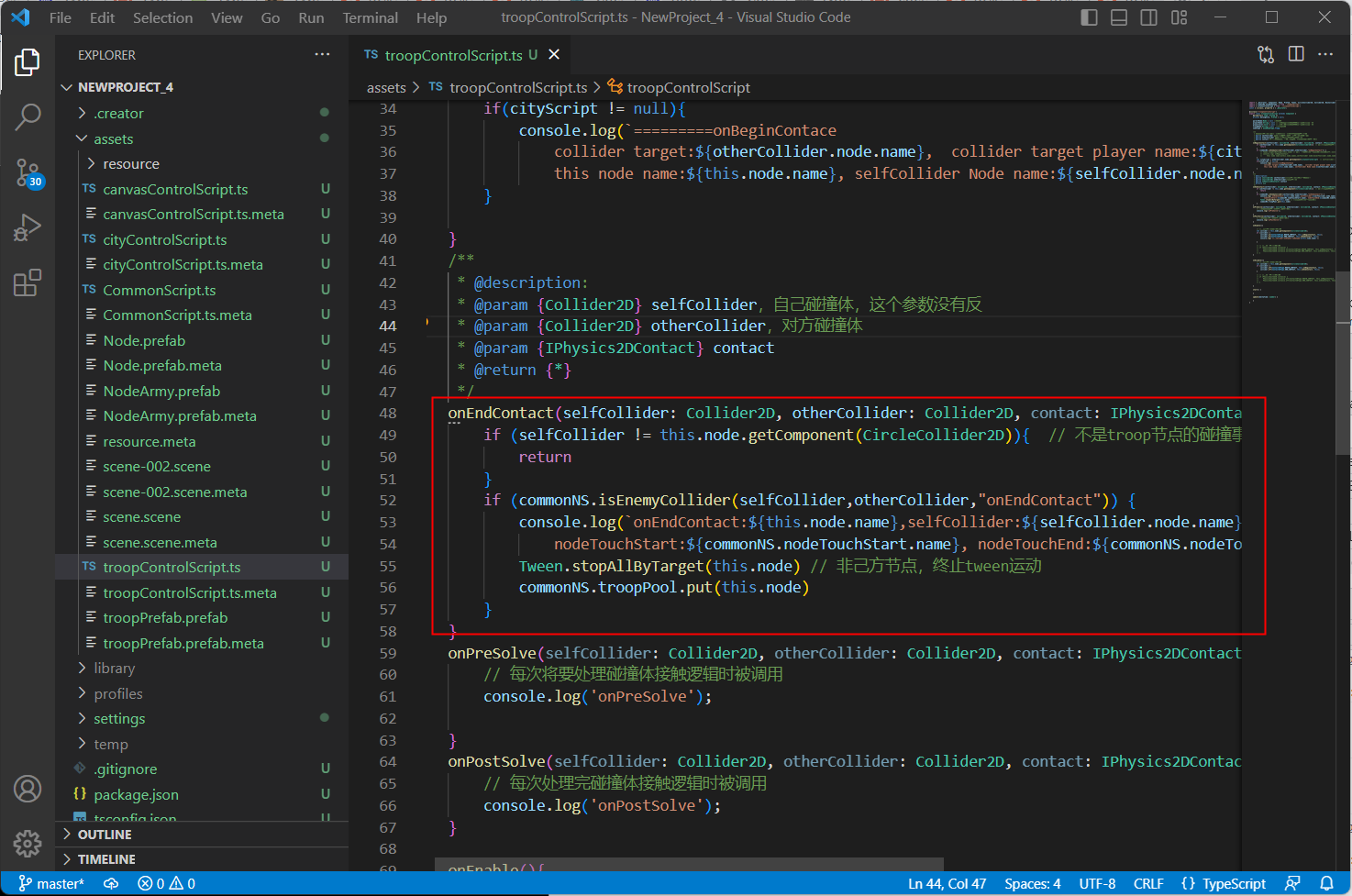 原本还勉强能运行的2d碰撞检测反馈函数,现在 onEndContact函数出问题了。原本对碰撞体的节点类别的判断,现在失效了