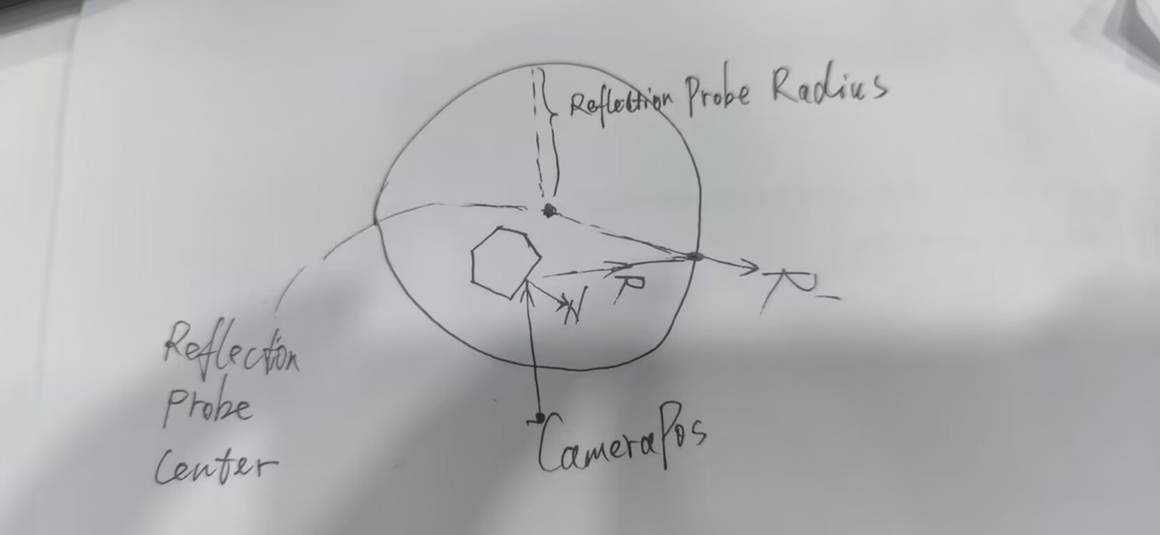 大概原理就是下面这样,用反射线与反射探针半径的交点与反射探针的中心构成新的方向,用于反射采样。