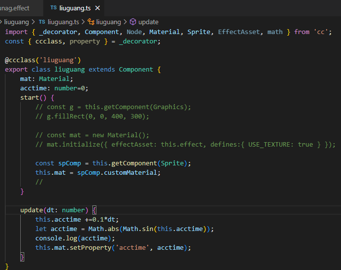又或者我从外部引入一个acctime自定义属性。做了一个简单的流光效果。仍然是 模拟量或者编辑器没问题。但是运行在web上就异常了