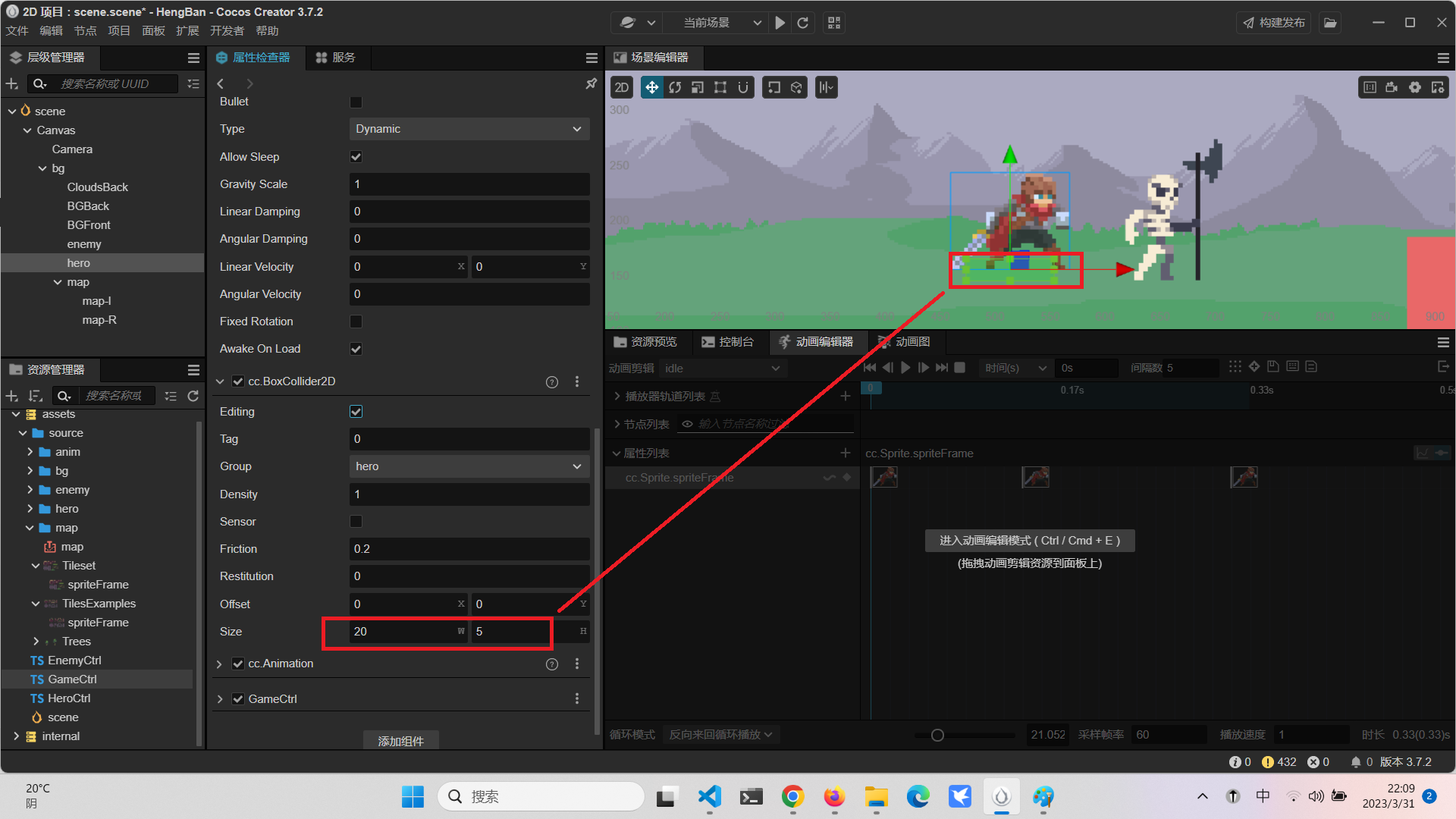 动画序列除了挥刀一帧外,其余碰撞盒子都是size(0,0)