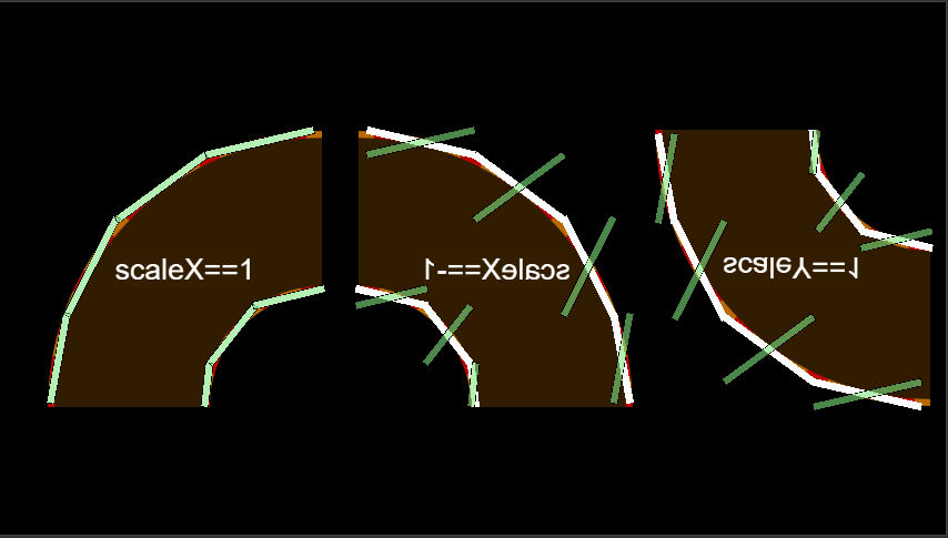 在做一个赛道,地图的弯道用若干个矩形刚体作为子节点拼成一个近似的圈,因为要在比较(非常)差的机子上运行,矩形应该比多边形好一点~然后弯道很多重复的,所以用一个弯道设置scaleX或scaleY复用,但是可以发现当父节点scaleX为-1的时候编辑器场景里看到是正常的子节点在运行时方向是反的,无法和父节点同步。并且不管怎么样的骚操作它都是反的,没有办法变为正的。解决办法也是反向骚操作,直接把子节点的rotation变为原来的负数就行了~