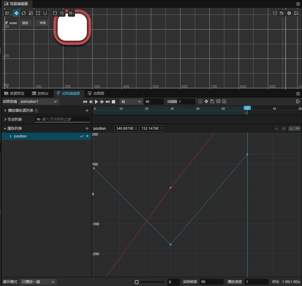 正常情况下游戏y方向分辨率肯定不止400,导致如果需要编辑的精灵移动远一点,曲线就无法显示完整,给编辑曲线带来不便。