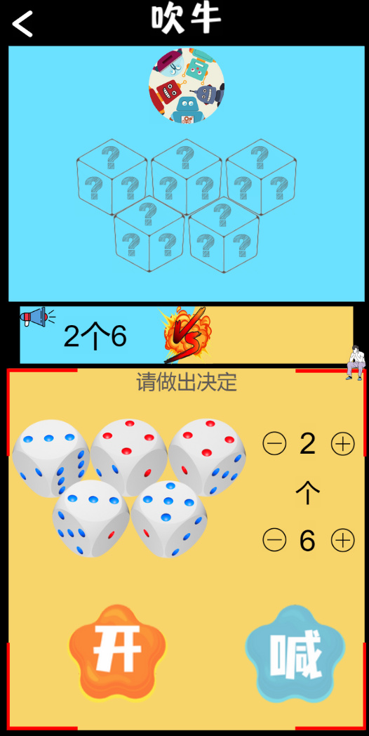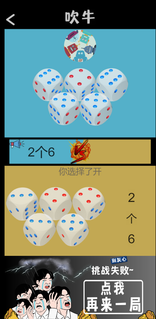 建议加个晃动摇色子,获取震动和重力感应之类的权限,可以选择手动点击或者自己晃动手机摇骰子,增加真实感