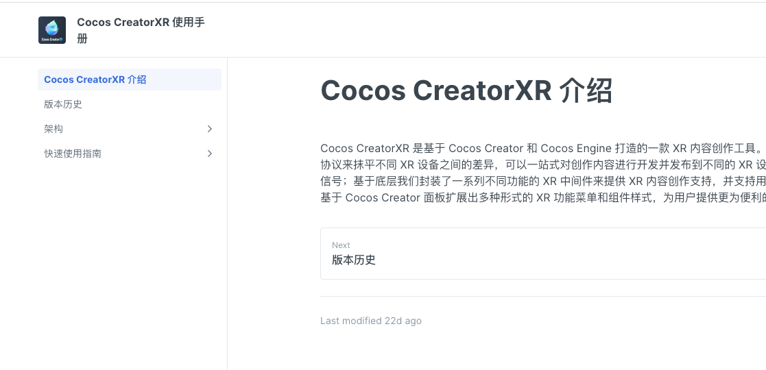 开发文档请参考https://cocos-creatorxr.gitbook.io/cocos-creatorxr-manual/