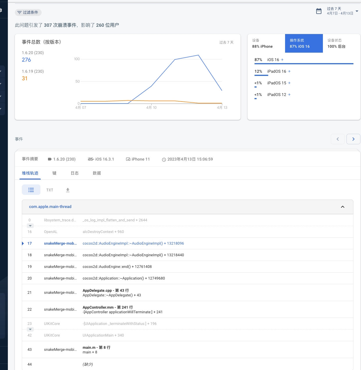 如图所示,退出应用是cocos2d::AudioEngineImpl::~AudioEngineImpl()会引起app闪退
