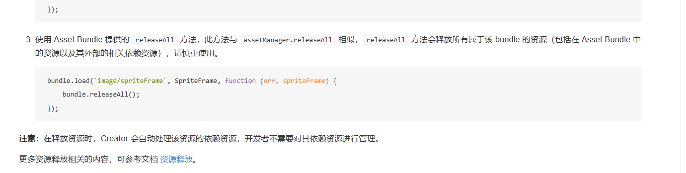 直接使用releaseAll除非你确定bundle中使用的资源或者依赖的资源其他地方没有引用,还是通过addref和deRef来管理资源吧,我一直这么用没有出现问题,如果实在要用bundle中的方法直接释放的话用bundle.release()来释放某个资源,releaseAll除非你很清楚资源依赖关系不然风险很大