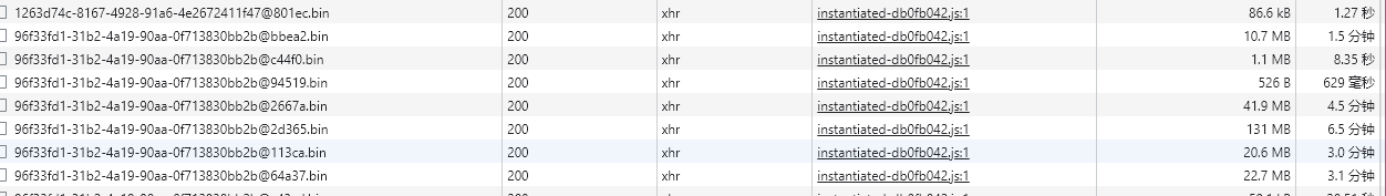 会接近6分钟才能加载出来,其中比较大的好像是一些bin文件