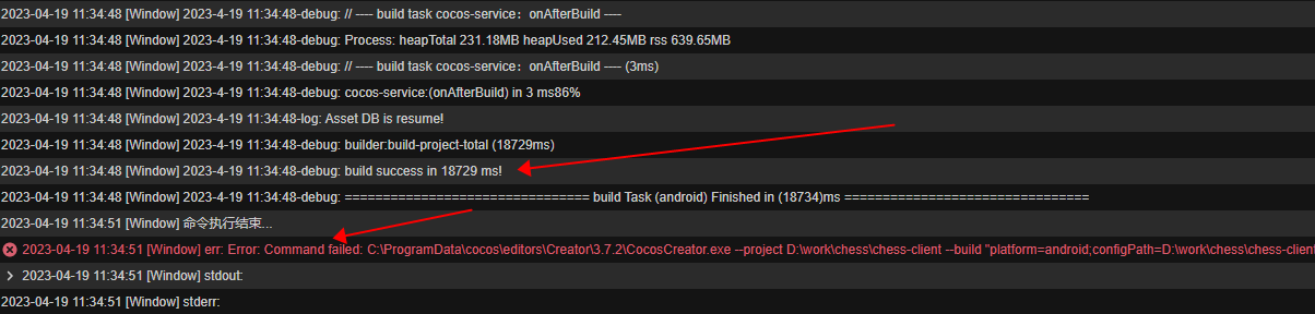 理论上,执行成功err应该是null,但是结果是err不是空,是执行失败,但是构建确实成功了的。是什么原因呢?