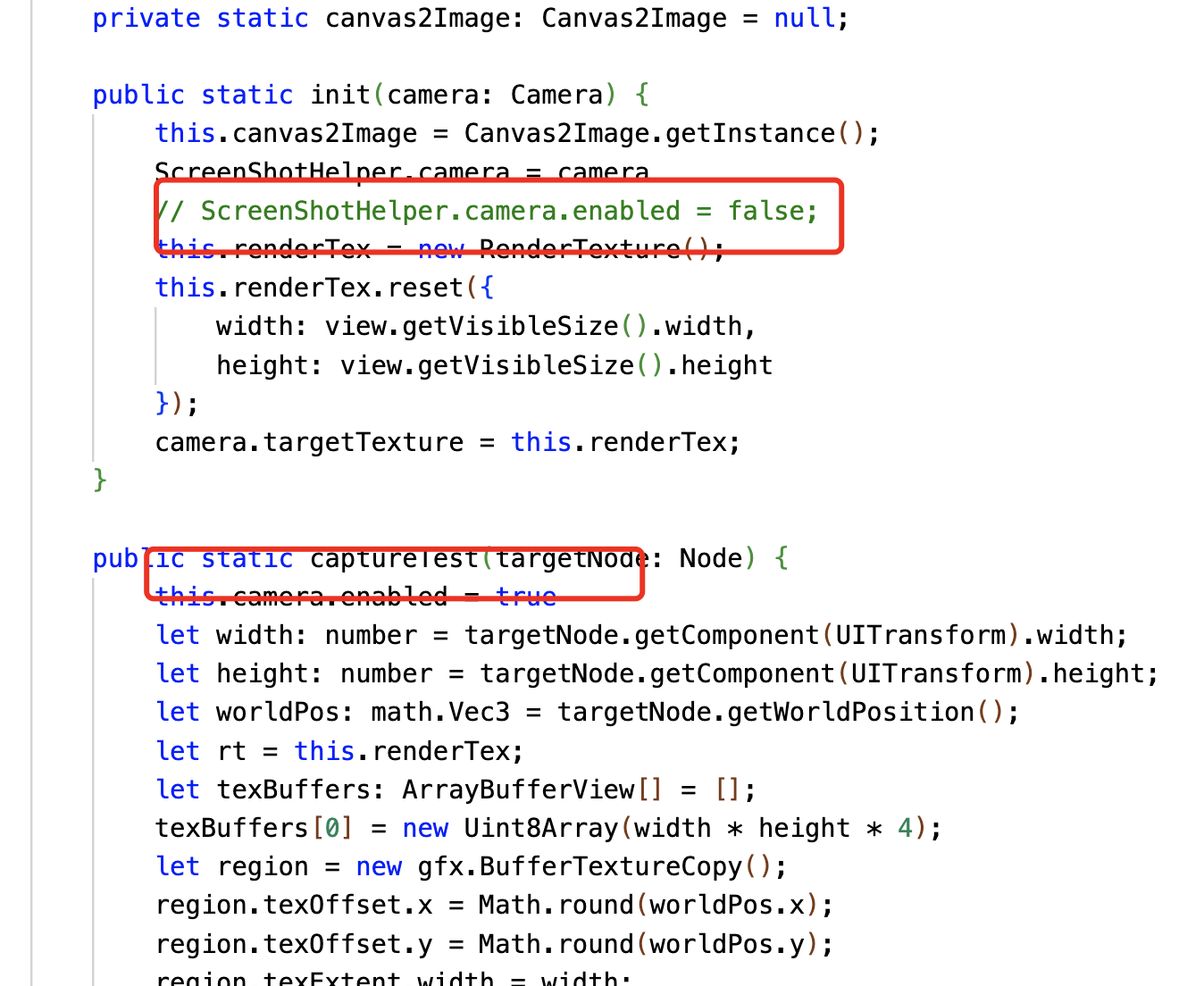 可以在启用 camera.enabled 之后,延迟一帧,再进行截图看看