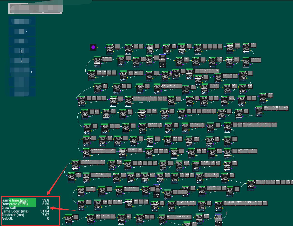 组件schedule里面的逻辑呢,并且一个节点更新其他节点需要更新你就先更新这个节点周围的下一帧更新后面的依次类推.游戏执行一次循环调用game logic 就要耗时32ms,重点看看游戏每循环一次都要跑你写的哪些逻辑,这些逻辑能不能拆成几帧去完成