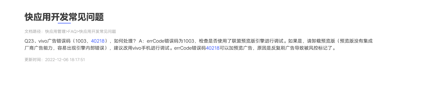 {“errMsg”:“没有广告,建议过一会重试”,“errCode”:40218 },有没有大佬知道为什么