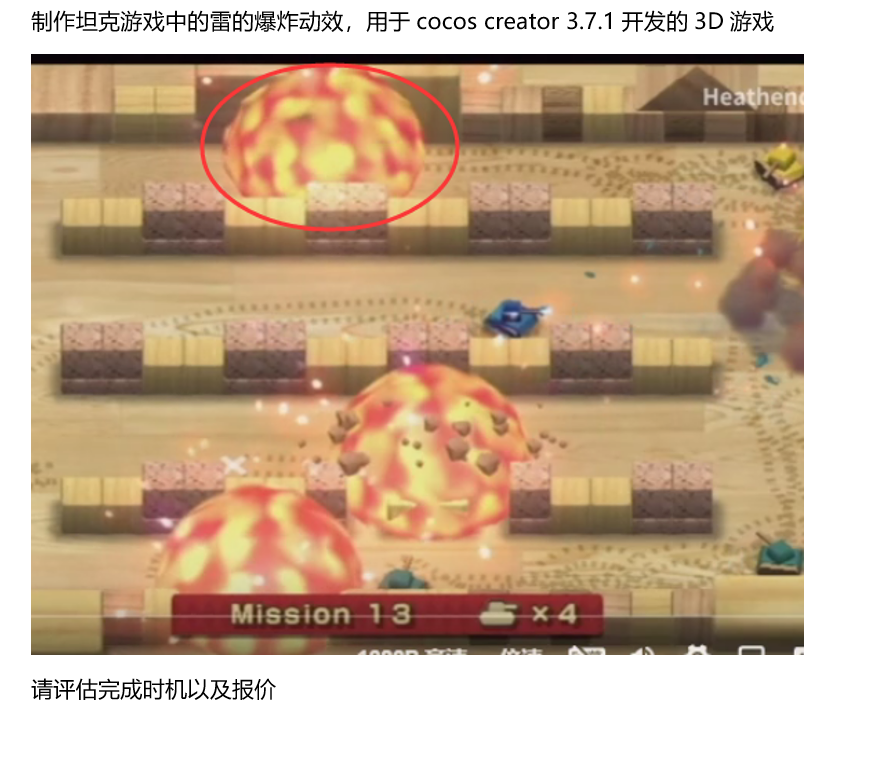 这边用cocos creator 3.7.1开发的一个坦克游戏,里面有一些特效需要制作,哪位擅长的,这边请您制作,价格协商。