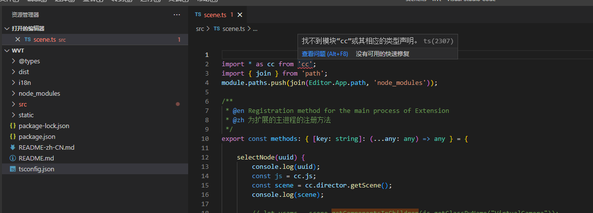 问题一:引入cc的时候会报错,但是//@ts-ignore 之后可以正常使用,说明cc已经全局存在了
