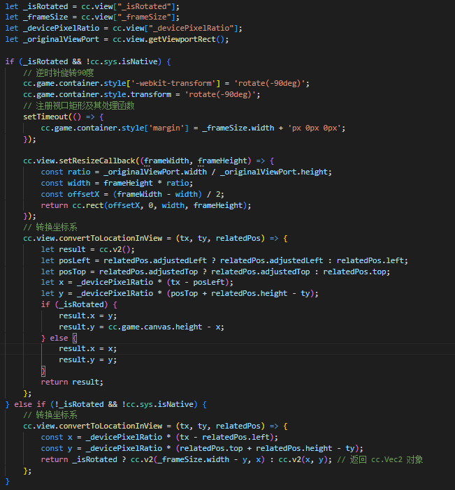 web的,引擎自带的横屏是左横屏;这个代码相当于是再引擎横屏的基础上,再旋转了180度