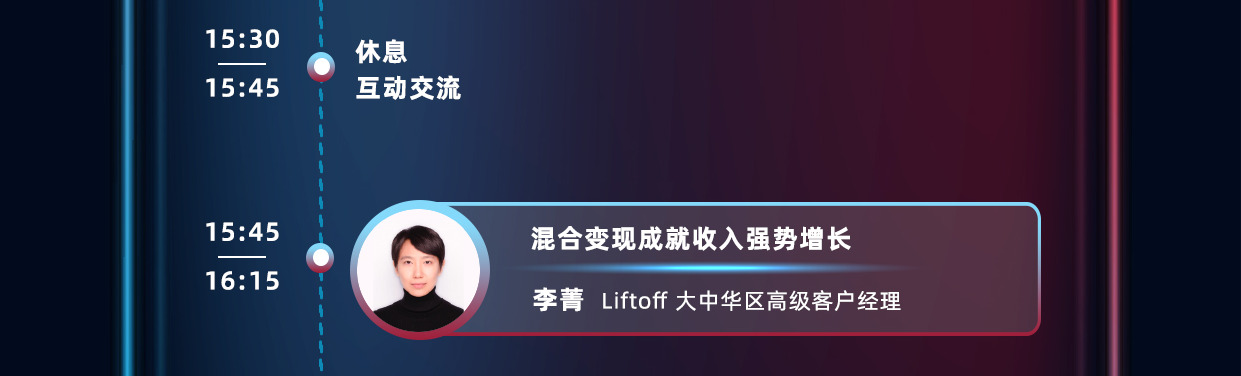 越来越多的游戏正在探索混合玩法,混合变现的形式给休闲游戏增加了更多利润。对于中国游戏来说,也可以通过混合玩法找到更多新的玩家。Liftoff 大中华区高级客户经理李菁,将围绕混合变现模式的优化与突破、精细化休闲游戏的变现新趋势等内容带来分享。