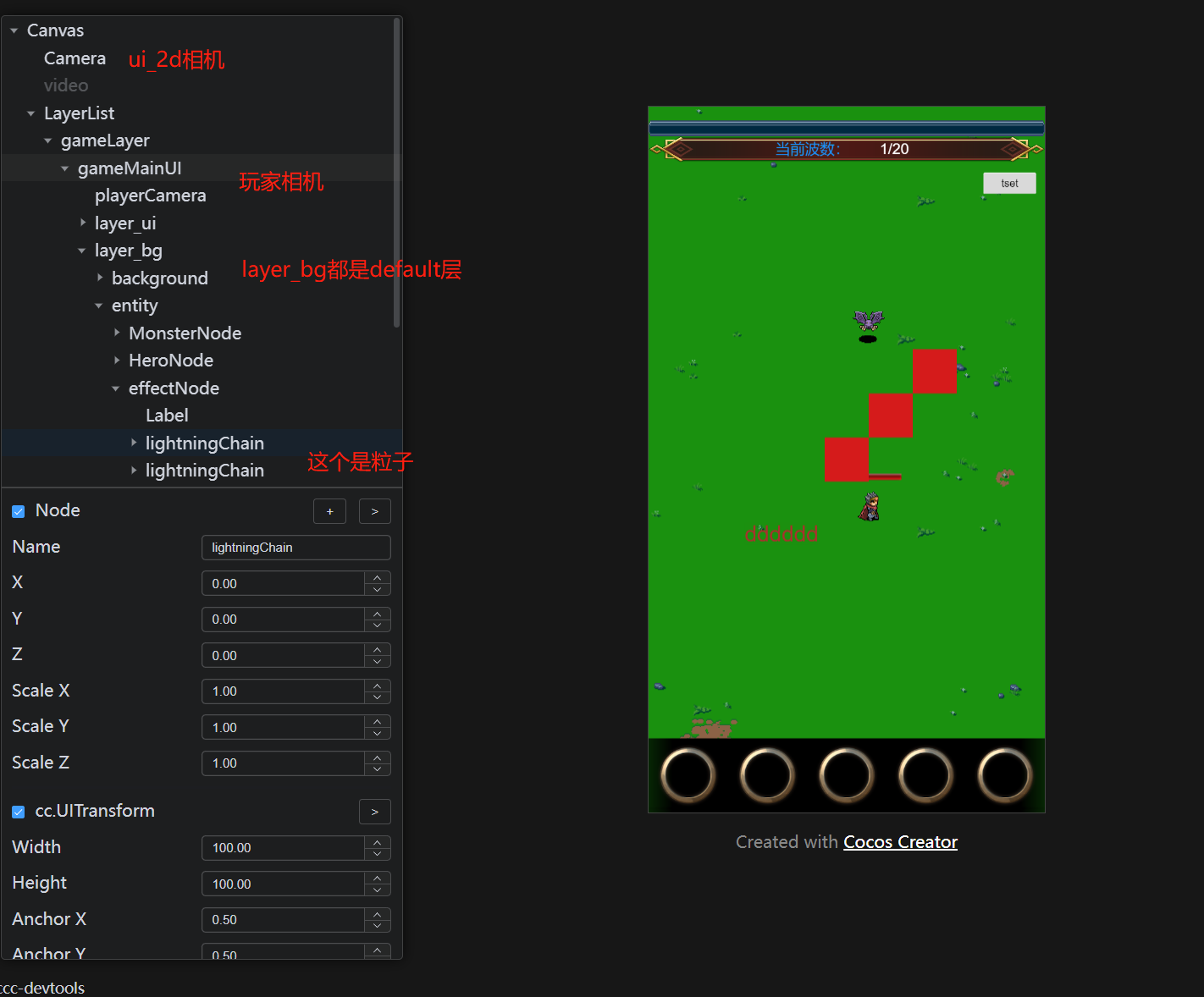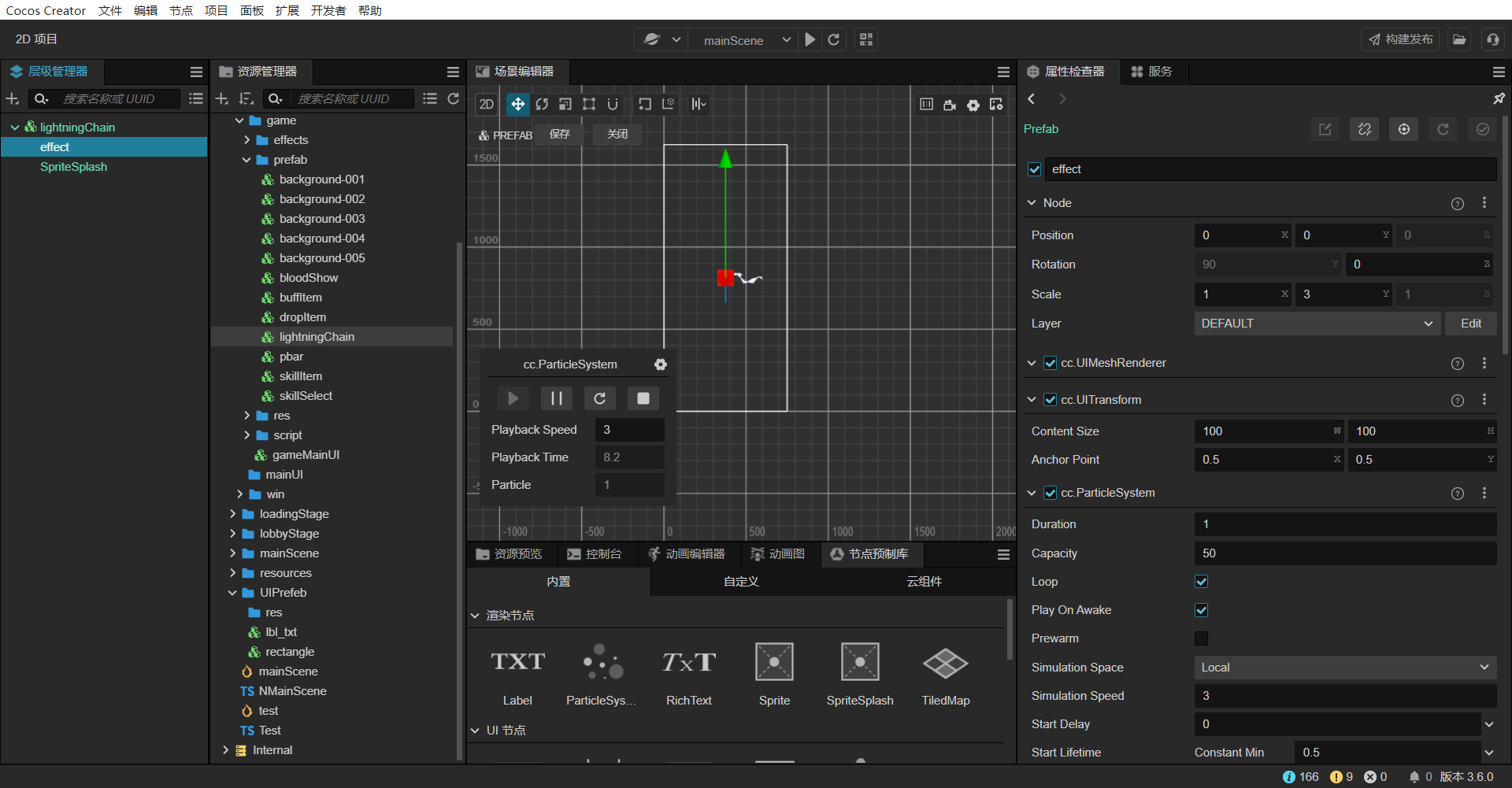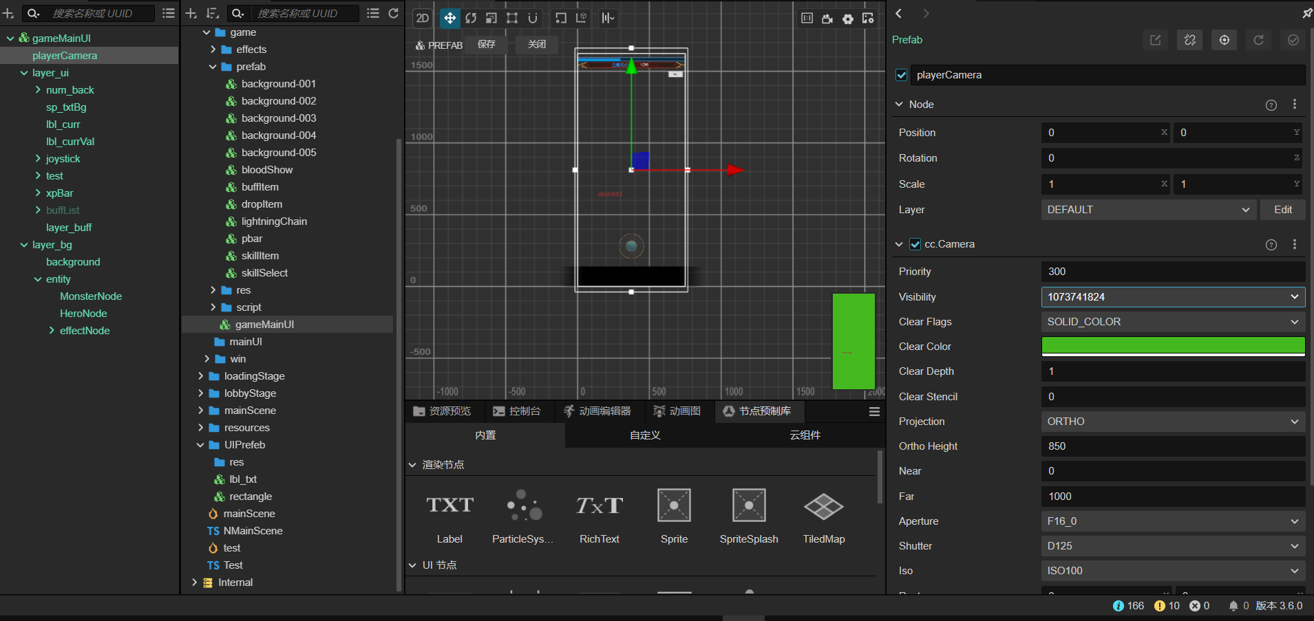 我在cocos 3.6.0 里面创建了一个3d粒子,我的项目有2个摄像机是,1个主摄像机渲染的ui_2d,一个角色摄像机渲染的default,这个粒子是在default层,但是在界面上不能显示,效果如图: